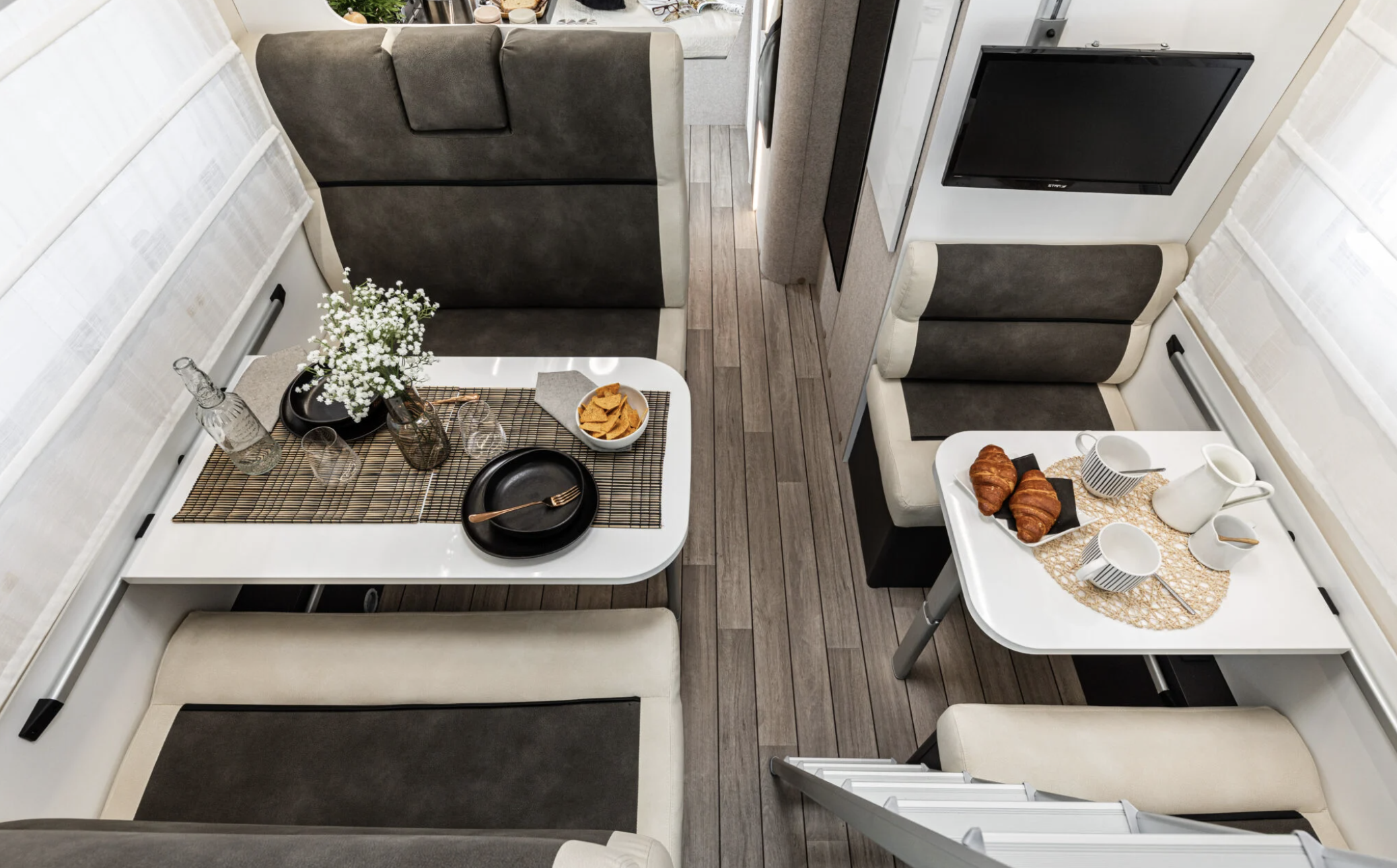 Dispone de doble comedor con espacio suficiente para comer todos los pasajeros. Gran luminosidad gracias a ventanales Seitz